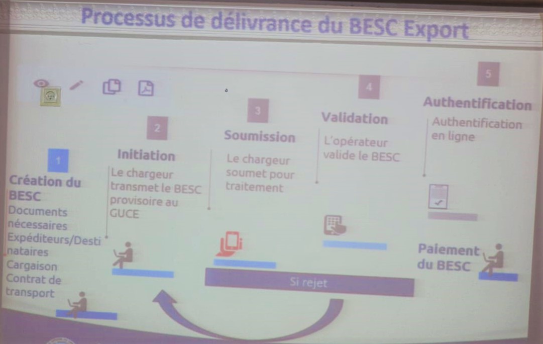 La présentation de la nouvelle plateforme a été effectuée par Mme Franca KOHO, Chef de la cellule d'exploitation et production, assistée de M. Charles BELL, Chef service du Support Utilisateur et des procédures. La formation à laquelle aura pris part une centaine de participants, a permis de présenter les différentes étapes liées à l'utilisation du BESC 3.0. Ces étapes ont porté sur la création d'un compte et les procédures d'établissement des différents BESC (Import, Régul, Export, Transit). Dans le cadre de la vulgarisation de cette nouvelle plateforme, une autre session de formation est prévue le lundi 4 mai 2026 à Douala.