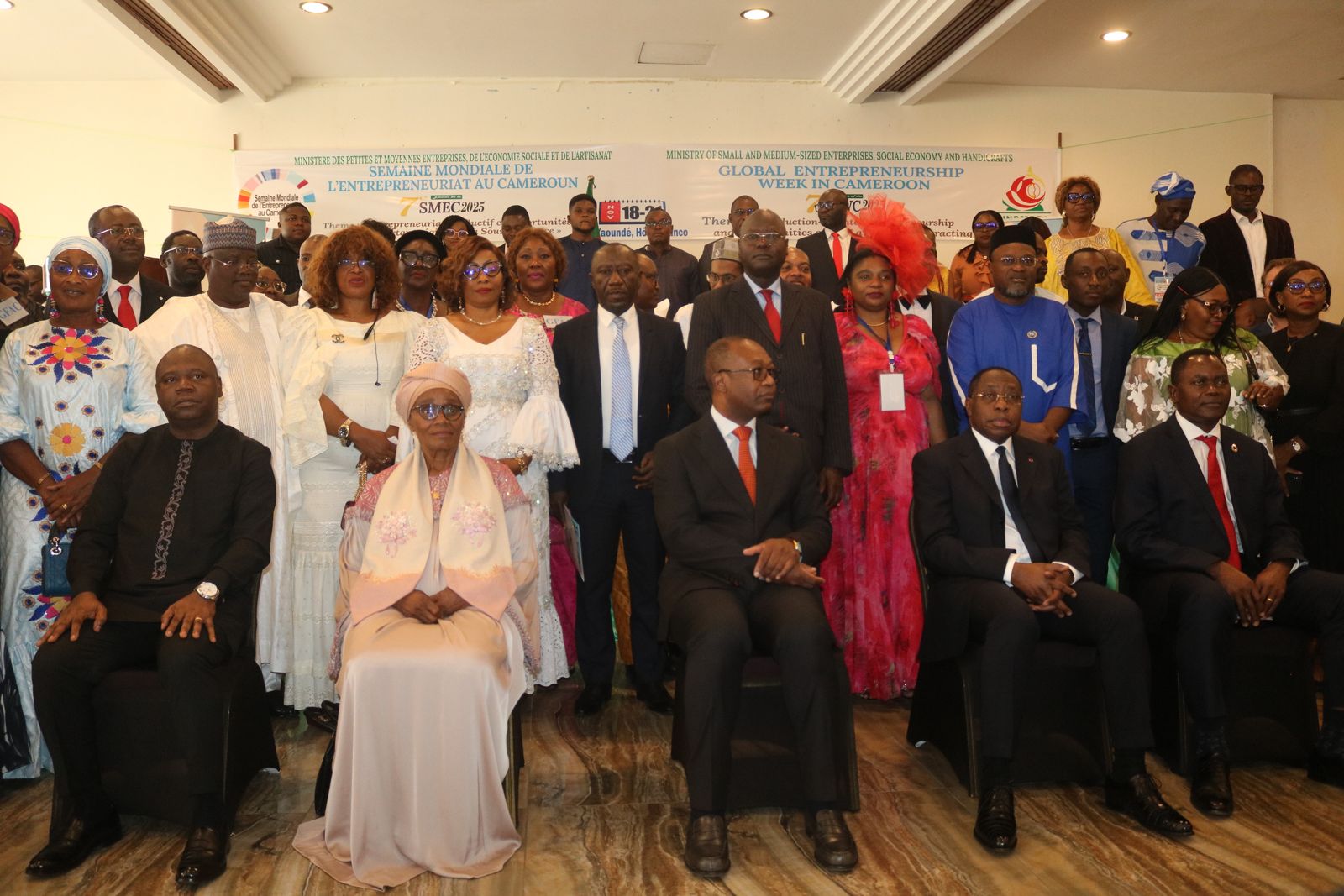 Le Directeur Général du Conseil National des Chargeurs du Cameroun (CNCC), M. Auguste MBAPPE PENDA, a pris part, aux côtés du Ministre des Petites et Moyennes Entreprises, de l’Économie Sociale et de l’Artisanat, M. Achille BASSILEKIN III, ainsi que du Ministre de la Promotion de la Femme et de la Famille, Mme Catherine ABENA ONDOUA, à la cérémonie officielle d’ouverture de la 7ᵉ édition de la Semaine Mondiale de l’Entrepreneuriat au Cameroun (SMEC).